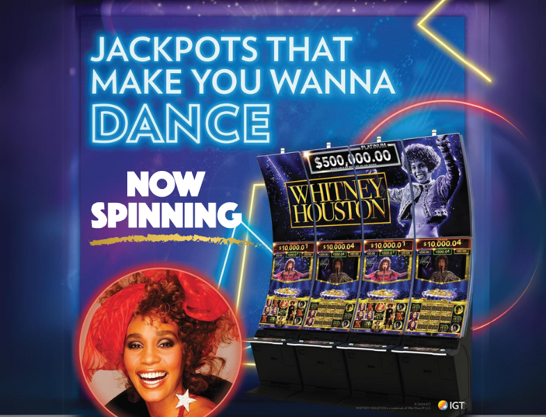 Casino guests will feel the beat of a legacy of chart-topping music while playing Whitney Houston Slots. The game features hit songs such as “I Wanna Dance with Somebody,” “So Emotional,” and “How Will I Know,” which are brought to life through a synchronized audio and video experience on the towering SkyRise cabinet.